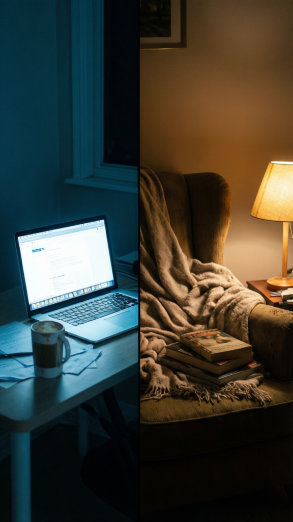 I use brighter, cooler light during work hours and switch to warmer light in the evening. It helps me shift out of work mode faster.