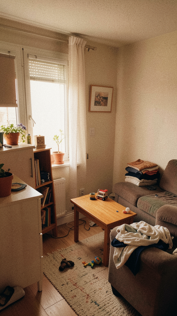 My apartment is never perfect. Toys show up. Laundry happens. Life is loud sometimes.